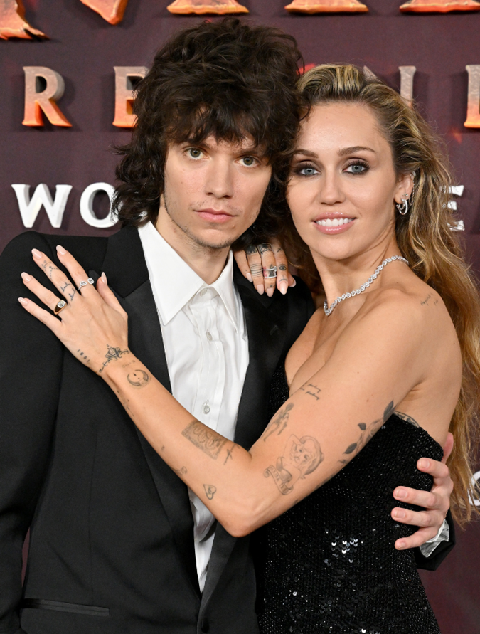 It's official! After four years with fellow musician Maxx Morando, Miley Cyrus is finally sporting an engagement ring. Cyrus flashed photographers the cushion-cut diamond and 14k yellow gold band bespoke Jacquie Aiche design at the Avatar: Fire and Ash premiere in Hollywood on December 1st. And obviously, we've spent all our time zooming in on the red carpet photos in a bid to get a closer look at her minimalist soap nails ever since.