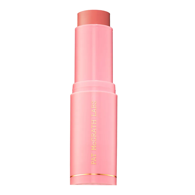 It's very pigmented, it's multi-dimensional, and it's placed rather uniquely, not just on the apples of cheeks, but veiled across the entire cheekbone. It almost looks, dare we say, like the natural flush we spy after a brisk morning walk, but like, in a chic way?